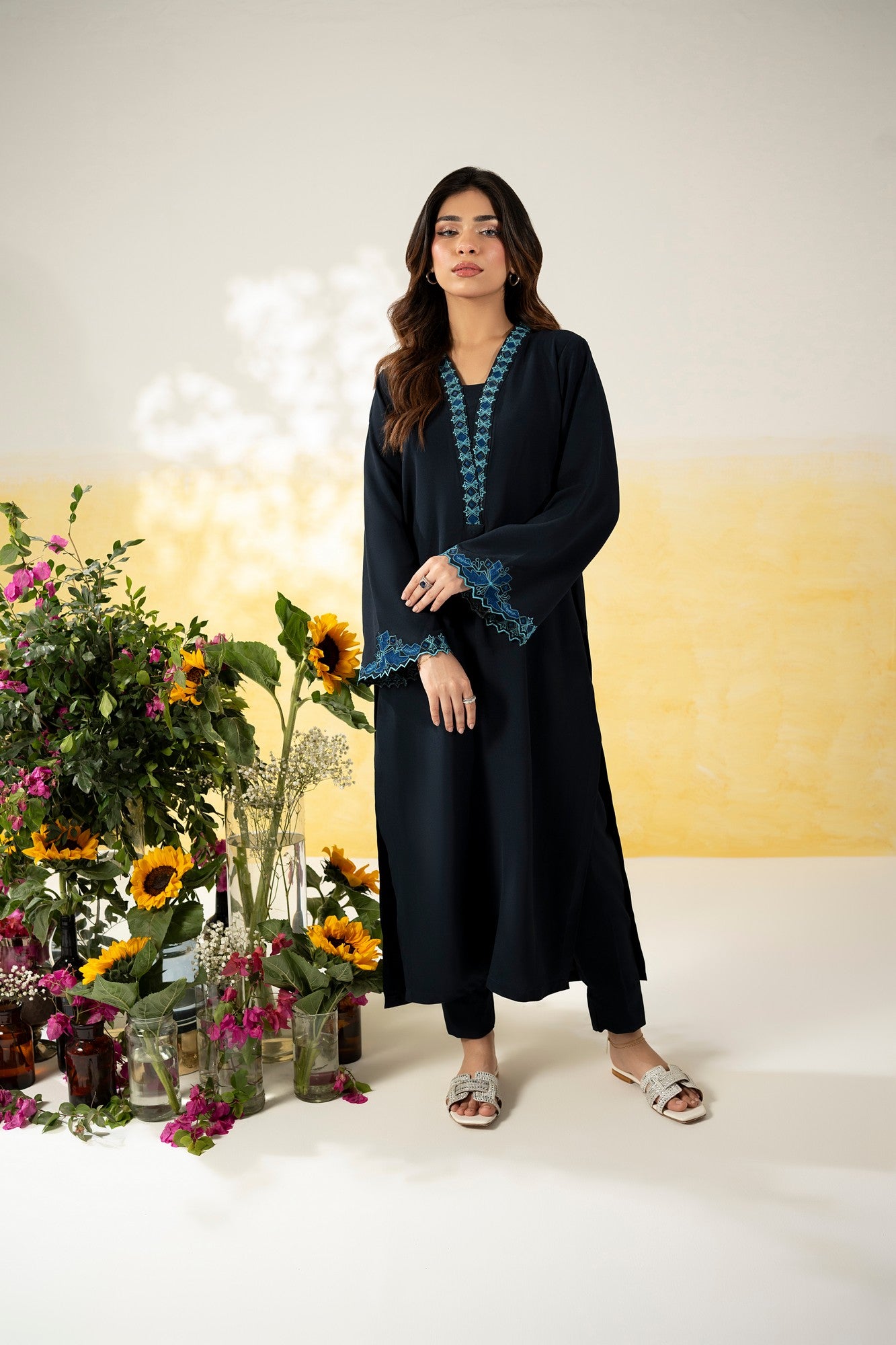 A sophisticated two-piece set in a stunning blue hue, made from premium Korean Blended Lawn. Featuring intricate embroidery on the neckline and sleeves, this outfit blends grace and comfort effortlessly.