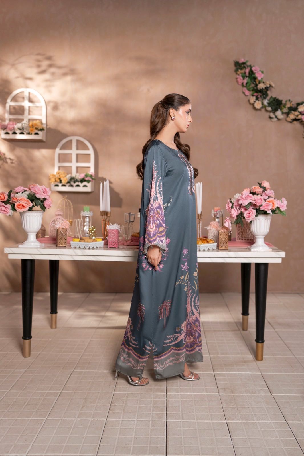 Step into effortless luxury with the Green Silk Kaftan. Designed in a fluid silhouette with a soft sheen finish for an elegant day-to-evening look. Includes kaftan & matching bottom.